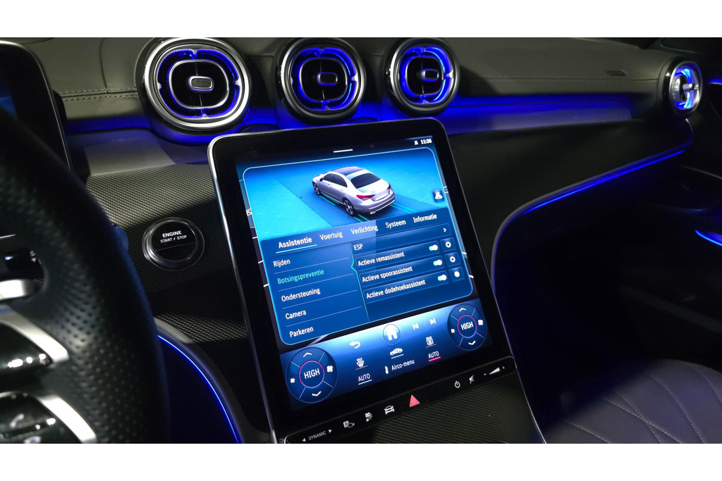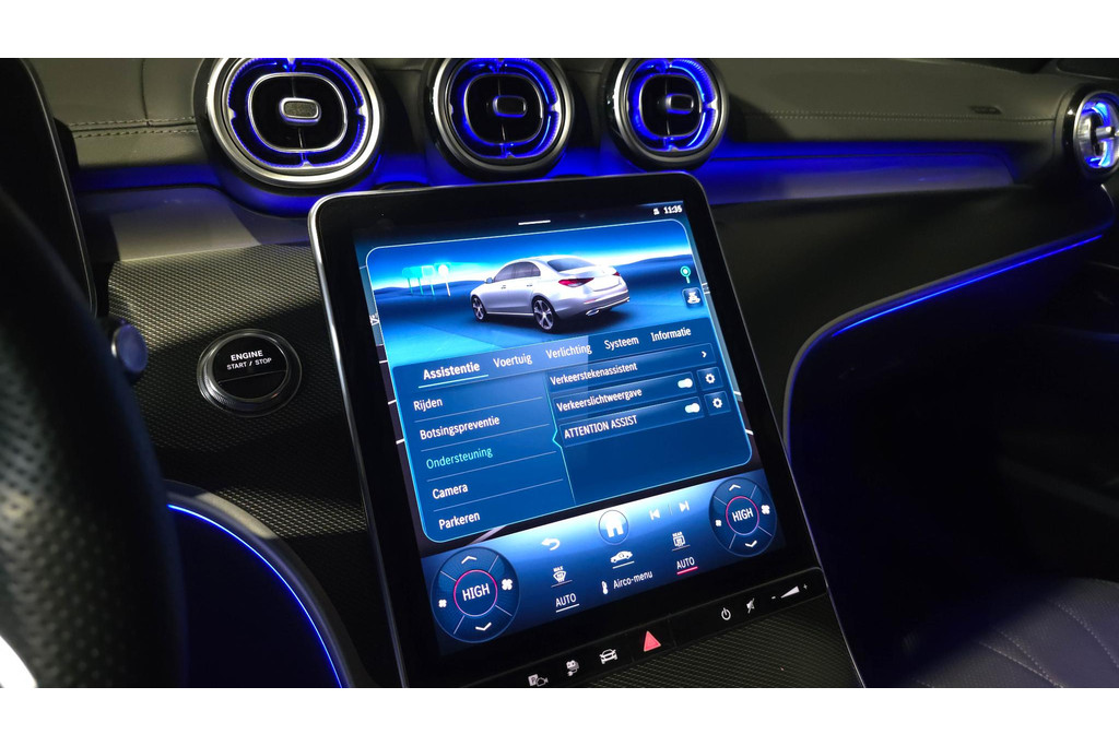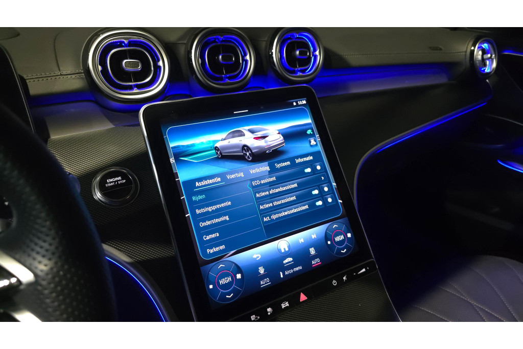 De top is eraf, alle systemen beproefd, de techniek up-to-date. Deze piepjonge Mercedes-Benz C-klasse staat te popelen om er weer op uit te gaan! Met de AMG-styling mag deze auto zeker gezien worden. De pluspunten van rijden op benzine en rijden op elektriciteit zijn soms lastig te vergelijken. Dus komt de hybride motor van deze Mercedes-Benz C-klasse mooi uit. De perfecte combi! Topklasse: daar hoort leren bekleding absoluut bij. Voorin is het 's winters genieten met de verwarmbare voorstoelen. Deze hebben bovendien een massagefunctie, zodat bestuurder en bijrijder altijd fit en soepel uitstappen. Zit u goed? De stoelen zijn eenvoudig instelbaar dankzij de elektrische bediening met geheugen. Het interieur baadt in daglicht dankzij het elektrisch bediende glazen panoramadak. Bij deze Mercedes-Benz C-klasse is aan alles gedacht, tot en met een verwarmd stuurwiel aan toe. Bij de uitrusting van deze Mercedes-Benz horen onder meer 19 inch lichtmetalen velgen, LED-koplampen, AMG-styling, donker getint glas achter, in delen neerklapbare achterbank en verstelbare lendensteunen.