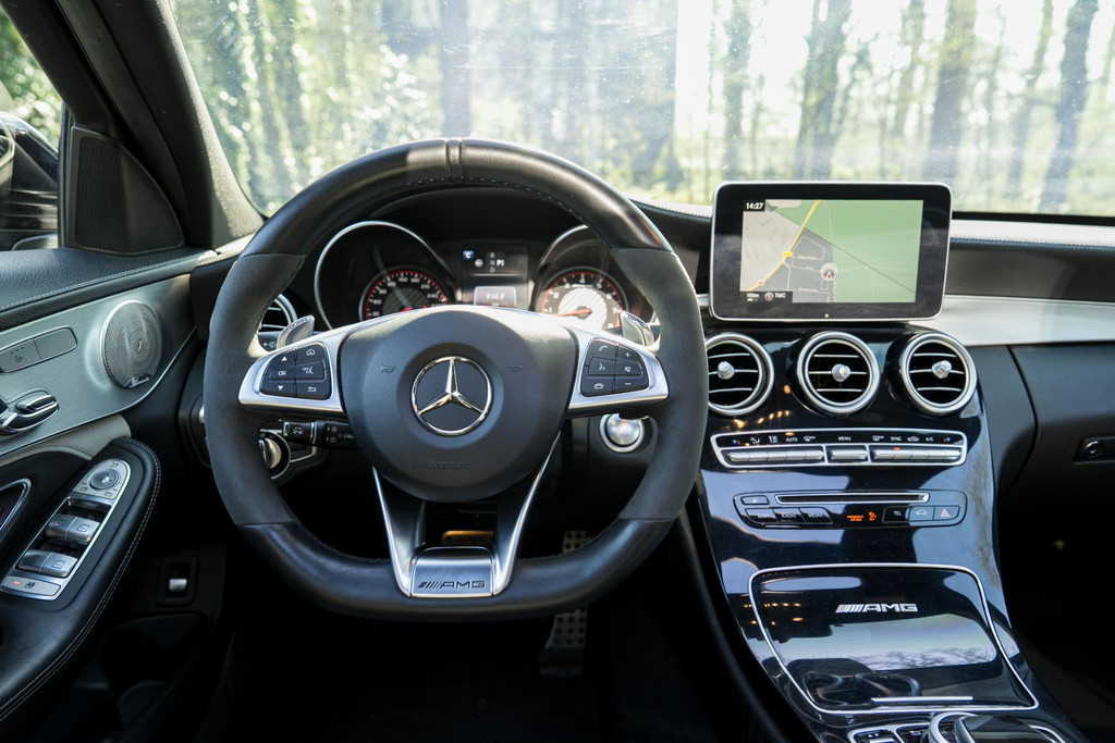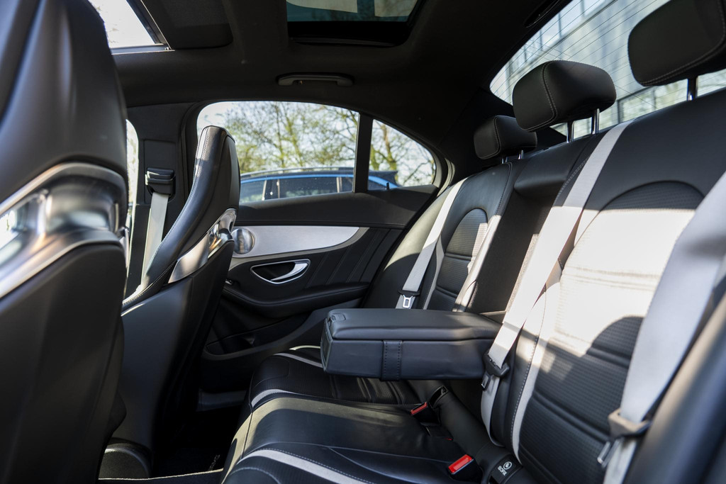 Hij zorgt voor een ontspannen rijervaring, deze Mercedes-Benz C-klasse. Het is een auto uit 2015. De AMG-styling geeft een niet te missen uitstraling. De aandrijving komt voor rekening van een benzinemotor en een automatische transmissie. Dat noemen ze nou een ruimtelijk effect: het elektrisch bediende glazen panorama dak, dat net zo gemakkelijk open en dicht gaat als de elektrisch bedienbare achterklep. En ondertussen het ware luxegevoel van het lederen interieur. U past de stoelen moeiteloos aan, ze zijn elektrisch in te stellen en hebben bovendien een geheugen. Verder is de Mercedes-Benz uitgerust met: 19 inch lichtmetalen velgen, LED koplampen, AMG-styling, adaptief dempingsysteem, warmtewerend glas en neerklapbare achterbank.