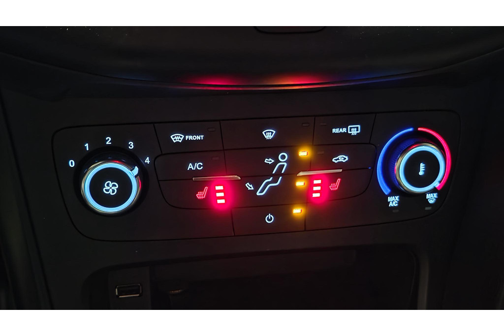 Nooit meer te warm of te koud. De automatische airconditioning zorgt altijd voor de temperatuur die u kiest. Natuurlijk is een complete auto als deze ook voorzien van sensoren die de omgeving in de gaten houden. Deze Ford heeft niet alleen een automatisch inschakelbare verlichting aan boord, maar ook een regensensor. Cruise control verlaagt de brandstofkosten en verhoogt het rijcomfort. En deze auto heeft ook automatisch dimmende binnenspiegel, lederen stuur en versnellingspook, centrale deurvergrendeling met afstandsbediening en boordcomputer als standaard uitrusting.