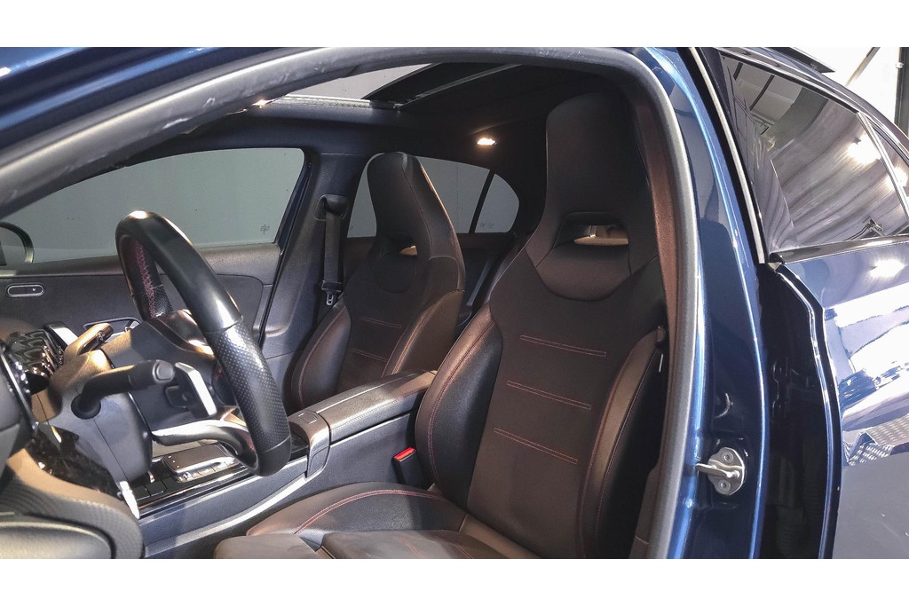 Zoals u mag verwachten van deze Mercedes-Benz A-klasse is hij uitgerust met een reeks aan actieve veiligheidssystemen. Wat deze auto ook kan, is lezen. Hij 'leest' voor u de verkeersborden tijdens de rit en attendeert u erop door ze op het dashboard te projecteren. Het Lane-keeping systeem doet precies wat nodig is: waarschuwen en corrigeren bij onbedoelde overschrijding van de rijstrooklijnen. Kop-staartbotsingen vormen een belangrijk deel van de meest voorkomende aanrijdingen. De forward collision warning van deze auto voorkomt zulke botsingen geheel of reduceert de ernst van de schade aanzienlijk. Ook helpen het brake assist en bandenspanningcontrolesysteem, uw rit tot een veilige rit te maken.