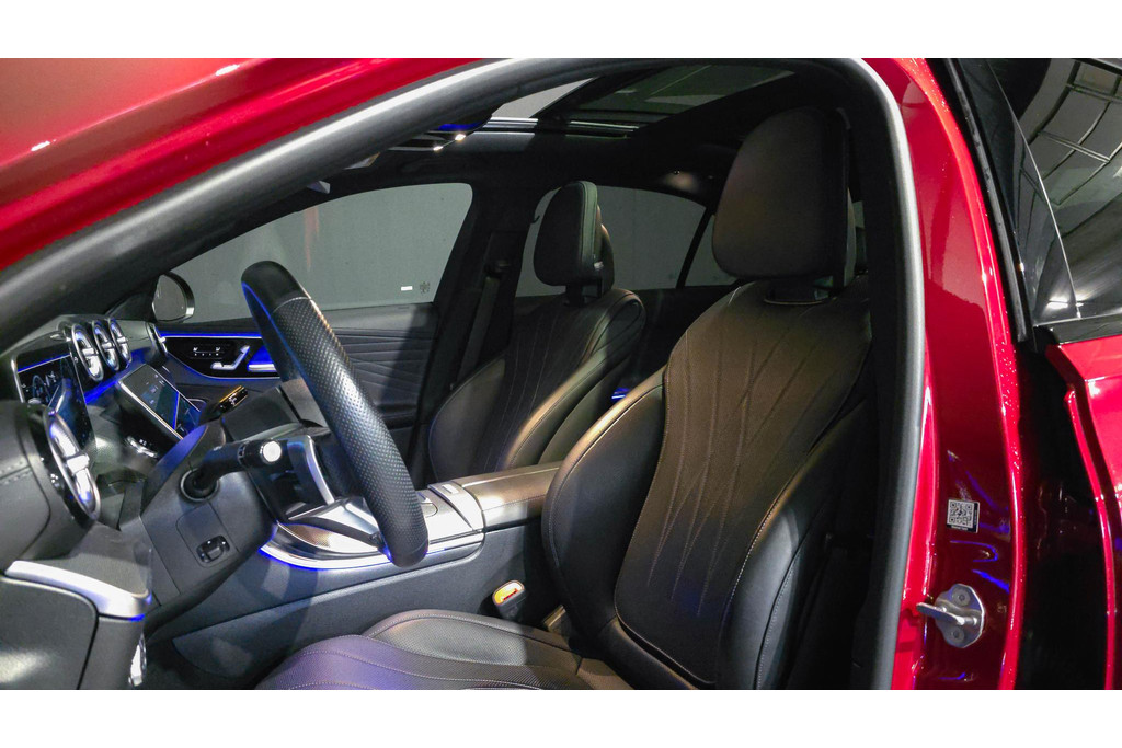 De top is eraf, alle systemen beproefd, de techniek up-to-date. Deze piepjonge Mercedes-Benz C-klasse staat te popelen om er weer op uit te gaan! Met de AMG-styling mag deze auto zeker gezien worden. De pluspunten van rijden op benzine en rijden op elektriciteit zijn soms lastig te vergelijken. Dus komt de hybride motor van deze Mercedes-Benz C-klasse mooi uit. De perfecte combi! Topklasse: daar hoort leren bekleding absoluut bij. Voorin is het 's winters genieten met de verwarmbare voorstoelen. Deze hebben bovendien een massagefunctie, zodat bestuurder en bijrijder altijd fit en soepel uitstappen. Zit u goed? De stoelen zijn eenvoudig instelbaar dankzij de elektrische bediening met geheugen. Het interieur baadt in daglicht dankzij het elektrisch bediende glazen panoramadak. Bij deze Mercedes-Benz C-klasse is aan alles gedacht, tot en met een verwarmd stuurwiel aan toe. Bij de uitrusting van deze Mercedes-Benz horen onder meer 19 inch lichtmetalen velgen, LED-koplampen, AMG-styling, donker getint glas achter, in delen neerklapbare achterbank en verstelbare lendensteunen.