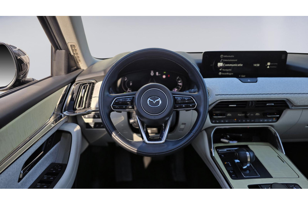 Een keurige auto, dat is deze Mazda CX-60, die 124004 kilometer heeft gelopen. De hybride motor van deze Mazda CX-60 zorgt dat u opvallend veel minder brandstof verbruikt dankzij de ondersteuning van de elektromotor met z'n eigen accu. En die laadt u al rijdend bij. Slim en zuinig! Het lederen interieur voegt stijl en allure toe. Hoe koud het buiten ook is, het verwarmbare stuurwiel en de verwarmbare voorstoelen brengen uw handen, vingers en lichaam snel weer op temperatuur. Licht, lucht, ruimte en gemak wordt verzorgd door het elektrisch bedienbare glazen panoramadak. De bagageruimte is toegankelijk via een comfortverhogende elektrische achterklep. U wordt in deze auto ook getrakteerd op 20 inch lichtmetalen velgen, LED koplampen, dakspoiler, extra getint glas, in delen neerklapbare achterbank en LED-achterlichten.