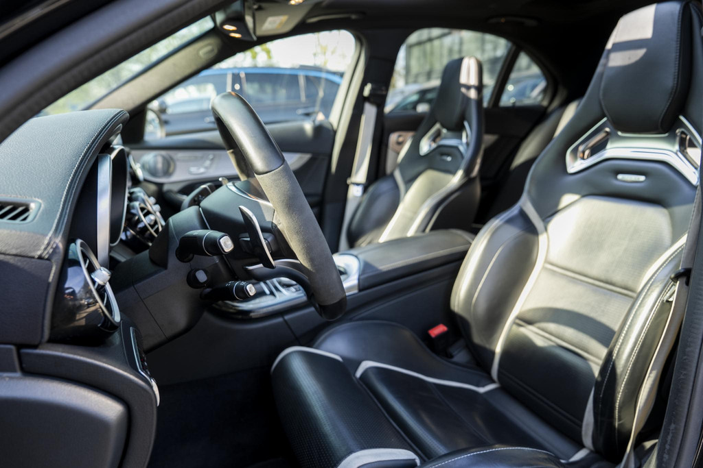 Hij zorgt voor een ontspannen rijervaring, deze Mercedes-Benz C-klasse. Het is een auto uit 2015. De AMG-styling geeft een niet te missen uitstraling. De aandrijving komt voor rekening van een benzinemotor en een automatische transmissie. Dat noemen ze nou een ruimtelijk effect: het elektrisch bediende glazen panorama dak, dat net zo gemakkelijk open en dicht gaat als de elektrisch bedienbare achterklep. En ondertussen het ware luxegevoel van het lederen interieur. U past de stoelen moeiteloos aan, ze zijn elektrisch in te stellen en hebben bovendien een geheugen. Verder is de Mercedes-Benz uitgerust met: 19 inch lichtmetalen velgen, LED koplampen, AMG-styling, adaptief dempingsysteem, warmtewerend glas en neerklapbare achterbank.
